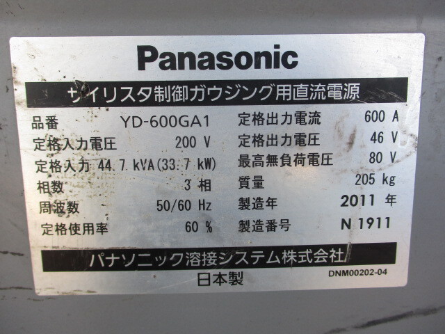 Panasonic サイリスタ制御ガウジング用直流電源  YD-600GA1 200V  パナソニック製