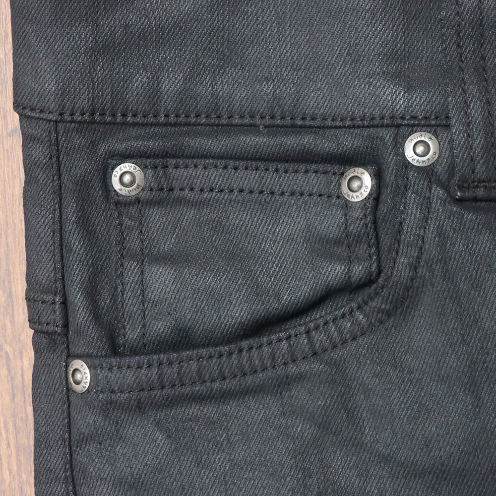 大人のカジュアルに自然に馴染む、洗練されたブラックデニム。Nudie Jeansの人気モデル「Thin Finn」は、細身のスリムテーパードシルエットで、脚のラインをすっきりと美しく見せてくれる一本です。