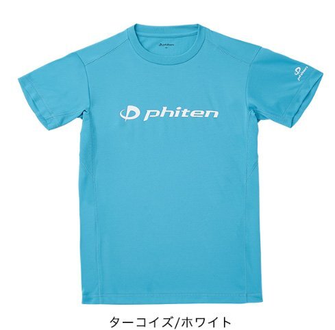 [ファイテン] RAKUシャツ 半袖 Tシャツ Phitenロゴ ターコイズ/ホワイト 3XOサイズ