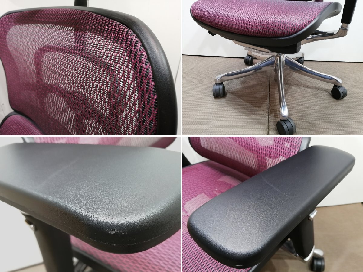 こちらは Ergohuman エルゴヒューマン PRO オフィスチェア ワインレッド です。 中古品 となります。 【 Ergohuman PRO / JOIFA 802 】 『Ergohuman/エルゴヒューマン』は、デスクワークで負担のかかりやすい腰へのサポートに重点を置き、 人間工学に基いて開発された多機能・高機能デスクチェアです。 エルゴヒューマンの最大の特徴である「独立式ランバーサポート」は、 着座時の姿勢に合わせて自動でポジションを調整し快適な座り心地を実現します。 一人ひとりに合わせた細かな調整も可能です。 エルゴヒューマンは様々なワークスタイルに合わせた 機能性と操作性を融合させたデザインや自然な座り心地が支持され、 現在では世界の約50の国と地域で愛用されています。 オフィスチェア、ワークチェアとしてはもちろん、ゲーミングチェアとしてもお勧めです。 商品詳細は、メーカーサイト Ergohuman Proにてご確認ください。 【 コンディション 】 中古品のため、フレーム・アーム・キャスター部分に スレ・小傷等の使用感がありますが、アームは左右の取替部品付きになります。 昇降・キャスター動作に問題はなく、まだまだ長きにわたりお使いいただけるかと思います。 ![]() 体へのフィット感と腰へのサポート機能が充実。オフィスや在宅ワークなどに! 是非、この機会にいかがでしょうか。 皆様のご入札をお待ちしております! 再良市場の他のお品物はこちらから!