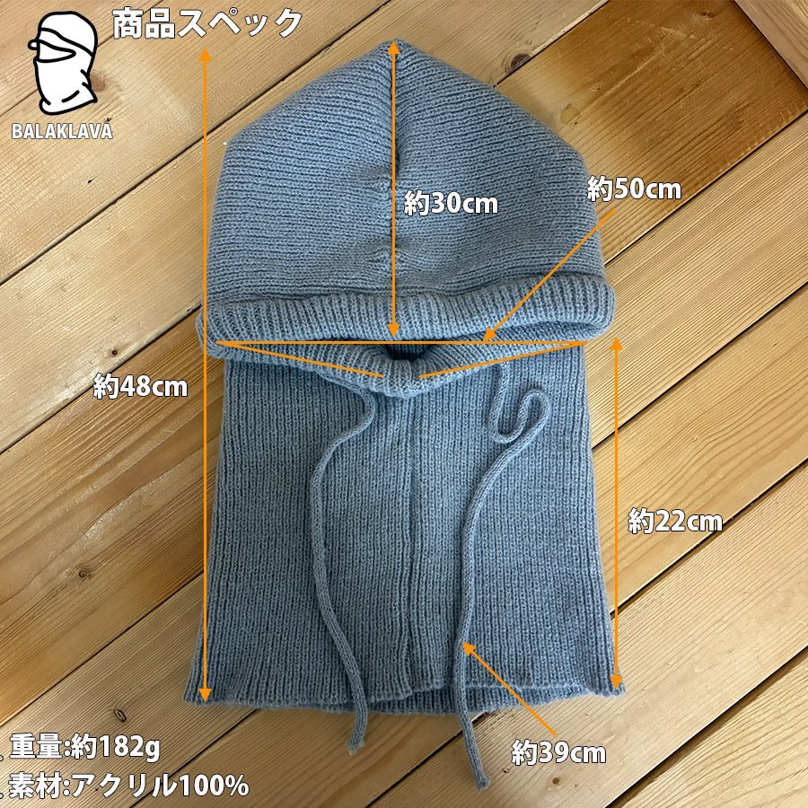 | 商品名:バラクラバ サイズ(約):全長:48cm・ネック内周:46cm・ネック部分長さ:22cm フード奥行:30cm・フード内周:50cm・コード長さ:39cm 重量(約):182g 生産地:中国 カラー:ブラック、グレー、ブラウン、ベージュ、ホワイト、グリーン 素材:アクリル100% |