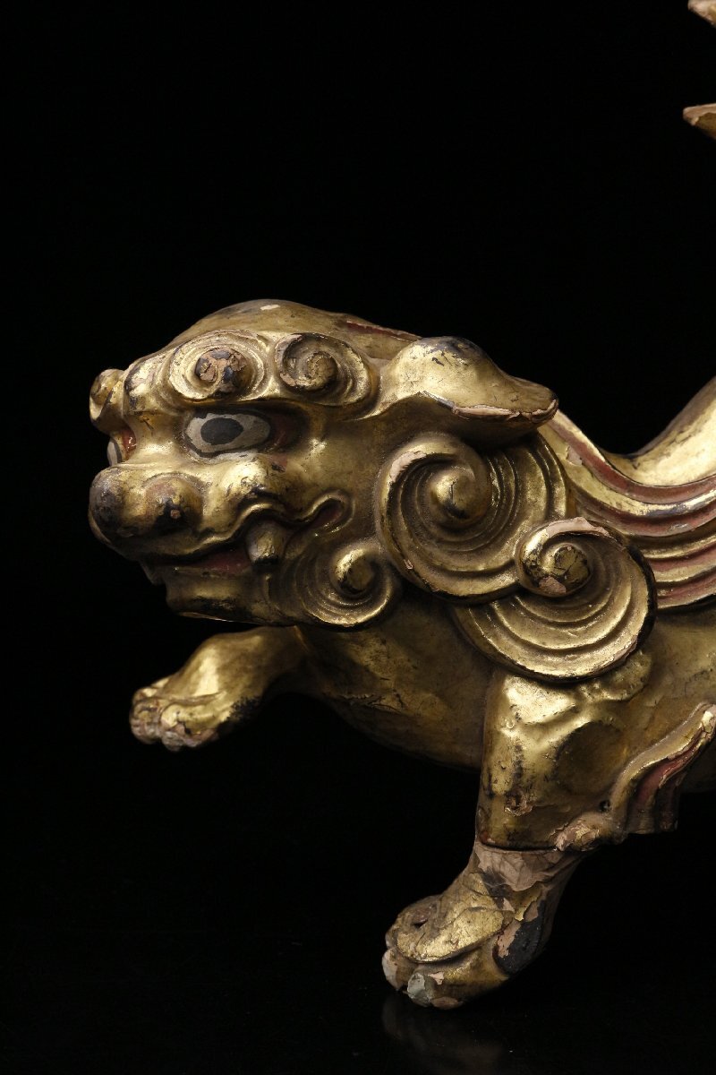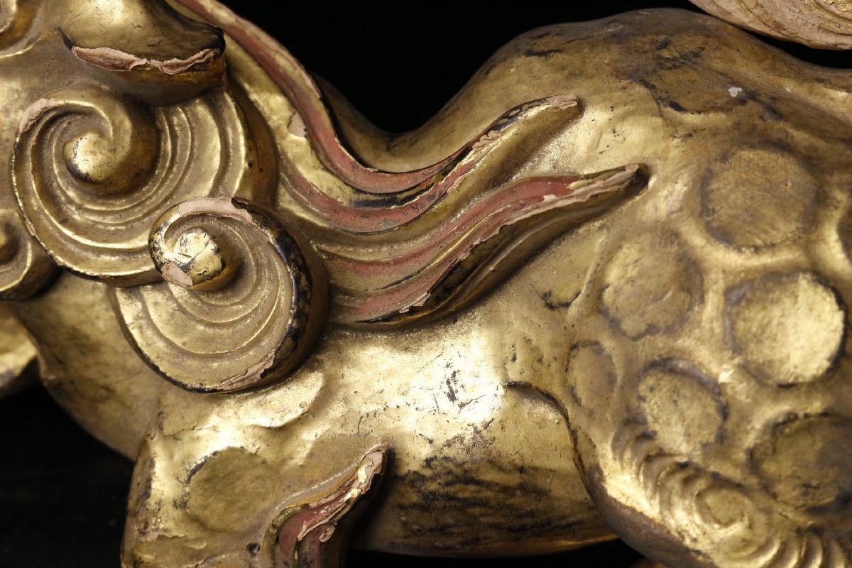 * * * 商品詳細 * * * ここでしか出逢うことのできない唯一の美をご紹介させて頂きます。 金彩を纏った獅子が煌びやかな欄間 獅子彫刻のご紹介です。 獅子は縁起の良い守り神であり、魔除けや厄除け、お祝いの際に用いられます。 牙を出し口を閉じた獅子は勇ましく表現され、 尾や顔周りの渦を巻く毛並み、 しなやかな胴体など丁寧な表現が光ります。 この機会に是非お手元にてご堪能ください。 ■サイズ/横26.5cm×縦21cm×奥行7.5㎝ ■状態/スレ、傷、欠け、剥げ、パーツ欠損、 接着跡、直し、釘に錆び、経年による傷みがございます。 ※写真にてご確認、ご了承の上ご入札下さい。 * * * 支払詳細 * * * Yahoo!かんたん決済 * * * 発送詳細 * * * 入金確認後3営業日以内に発送致します。 ※直接引き取りも可能です。 60~160サイズにつきましては 佐川急便、ゆうパックのどちらかで発送いたします。 ゆうパック発送の場合、弊社の発送日から追跡サービスに問合せ番号が反映されるまで 約1日ほどお時間がかかりますのでご了承下さい。 * * * 注意事項 * * * 運送中の破損があった場合は速やかに当社までご連絡下さい。 保険を利用するのに受取連絡後に運送会社による現場での破損状況確認が必要となります。 勝手に返送されますと保険の適用外となりますのでご注意ください。 * * * * * * お問い合わせ:082-236-8669 |