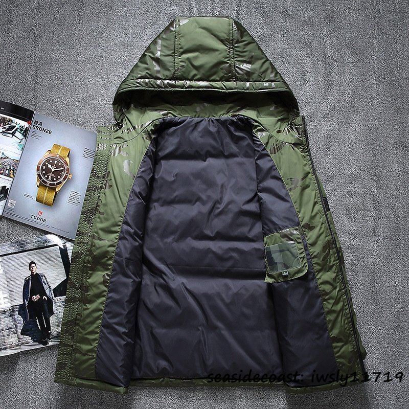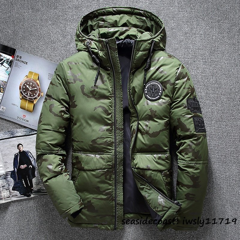 冬新品*メンズ ダウンジャケット 厚手 スキーウェア ダウンコート パーカ ワッペン付き 迷彩柄 ブルゾン アウトドア 防風防寒 オリーブ 3XL