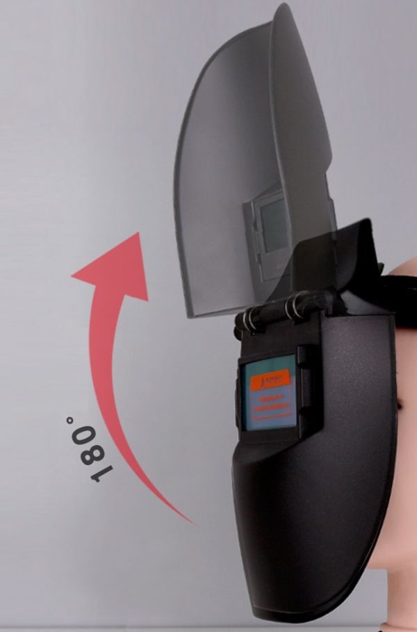アーク光の発生と同時に遮光(反応)で有害光線から目を守ります。