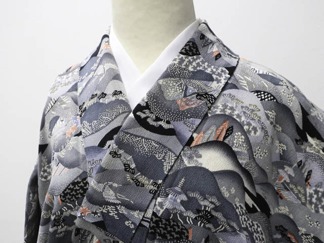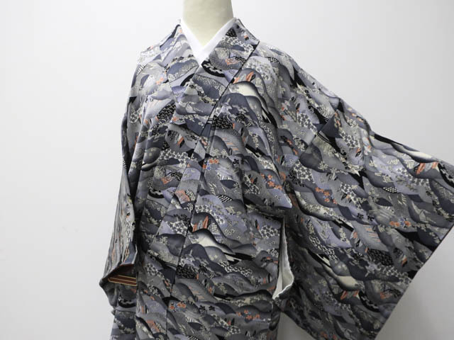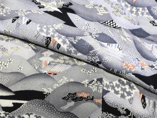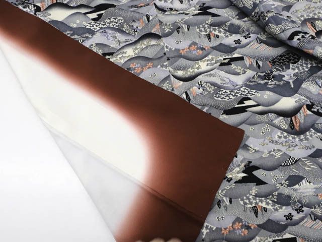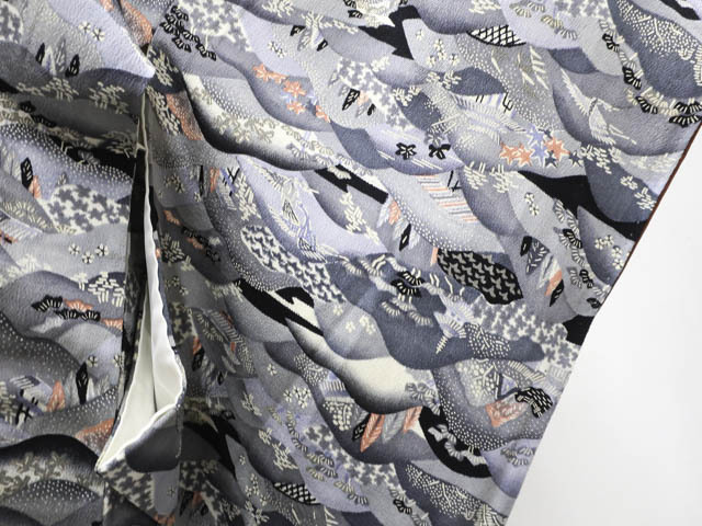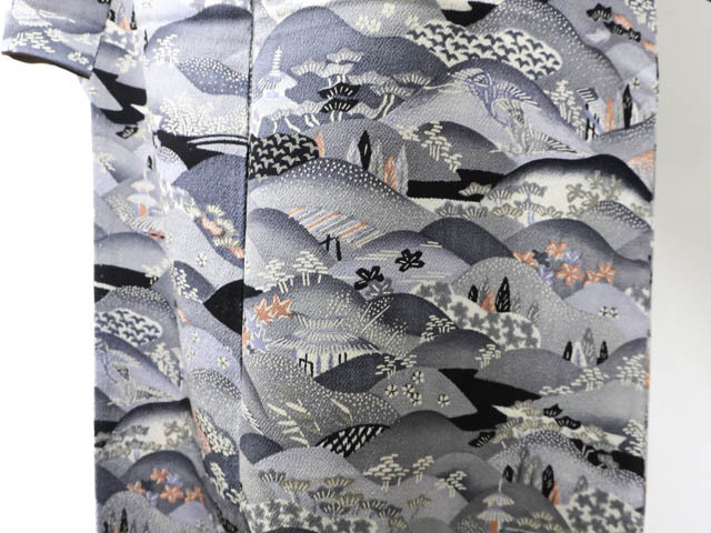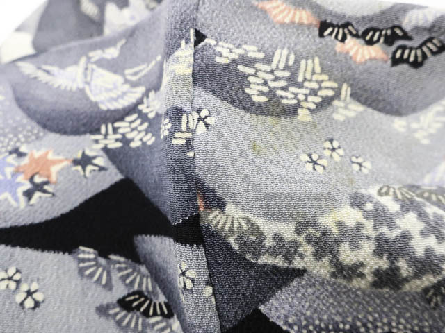 リサイクル商品のため、全体にしみやけがございますので、リメイク・材料用としてお使い下さい。 地色は 灰です。 1枚目の画像が近いお色かと思われます。 素材は正絹です。 |