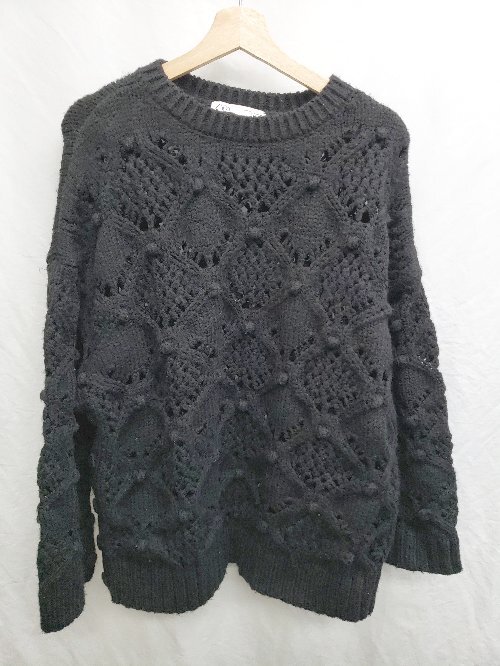 ◇ ⊇ ZARA ザラ ゆったり 長袖 ニット セーター EUR M USA M MEX 28 ブラック レディース P