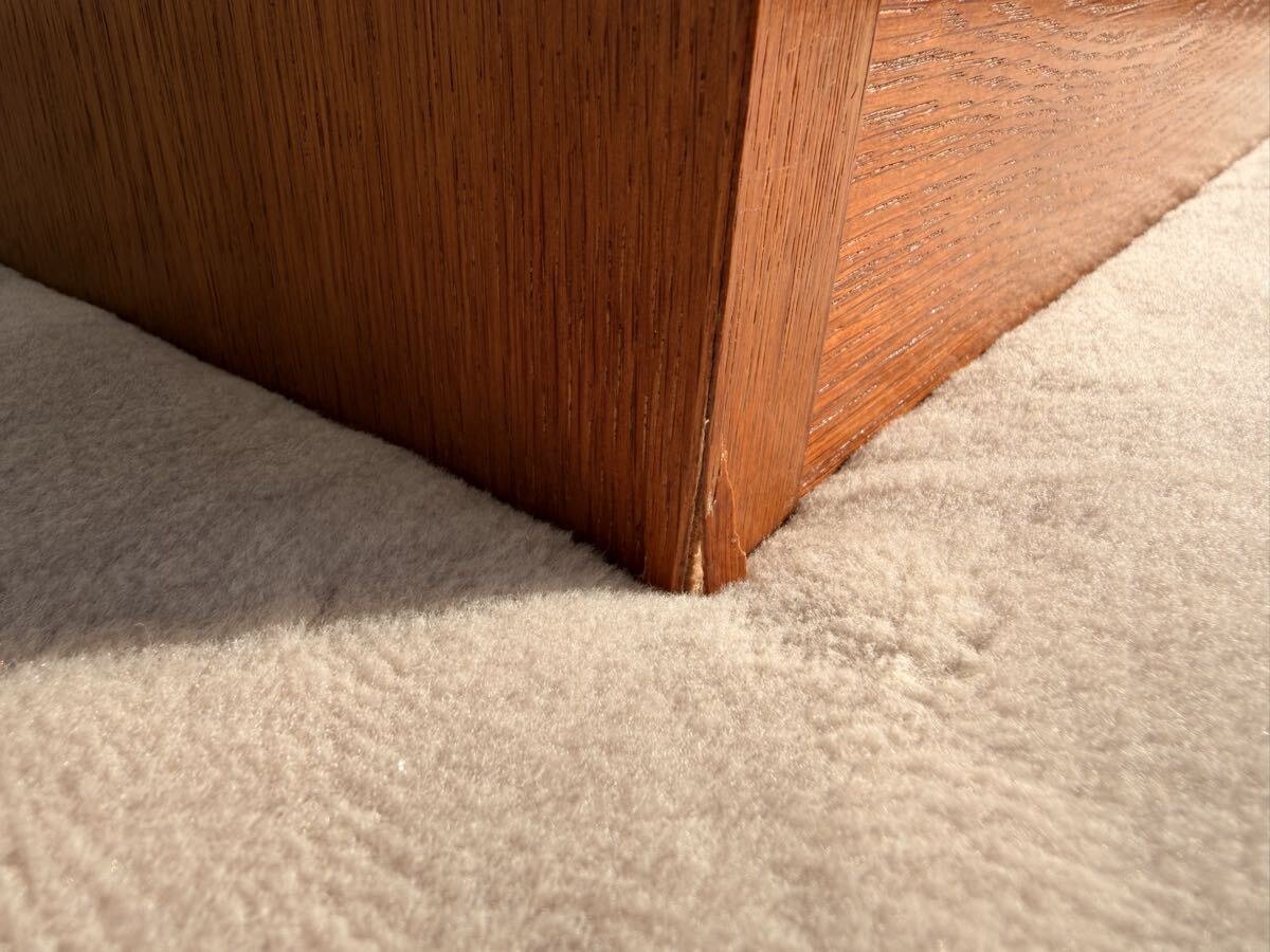 天板に線傷、正面向かって左下の角に捲れがございます。画像では捲れた部分がギリギリひっついていますが、撮影後外れてしまいました。