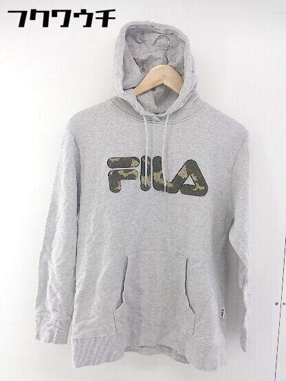 ◇ FILA フィラ 迷彩 ロゴ スウェット プルオーバー パーカー サイズL グレー レディース