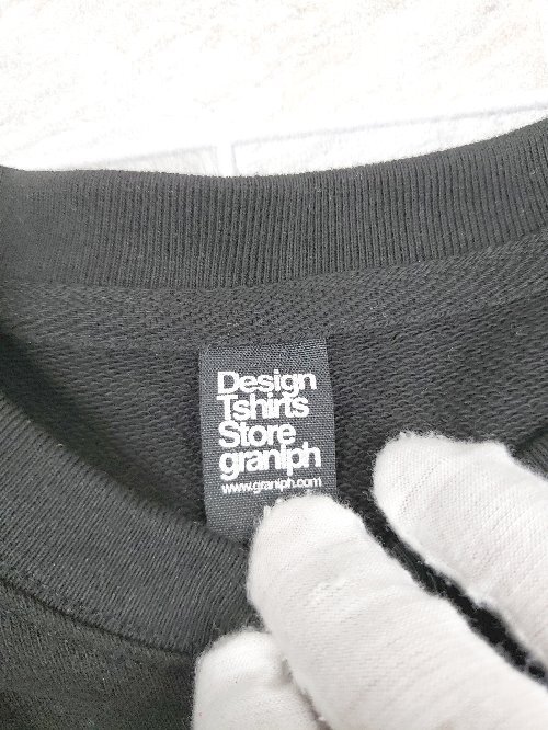 ◇ graniph グラニフ コットン100% プリント 長袖 トレーナー サイズM ブラック メンズ レディース P