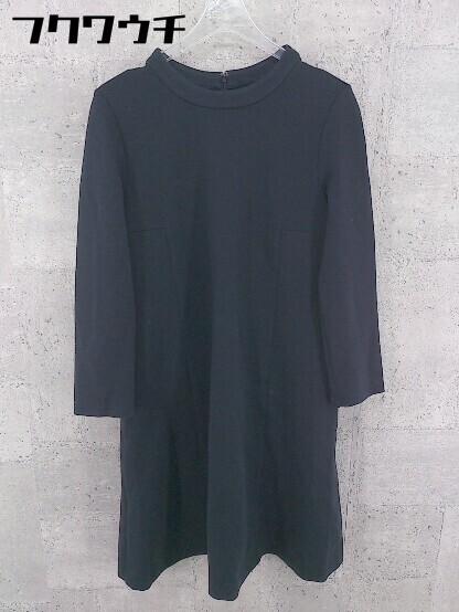 ◇ ELFORBR エルフォーブル バックジップ 長袖 膝丈 ワンピース サイズ38 ネイビー レディース