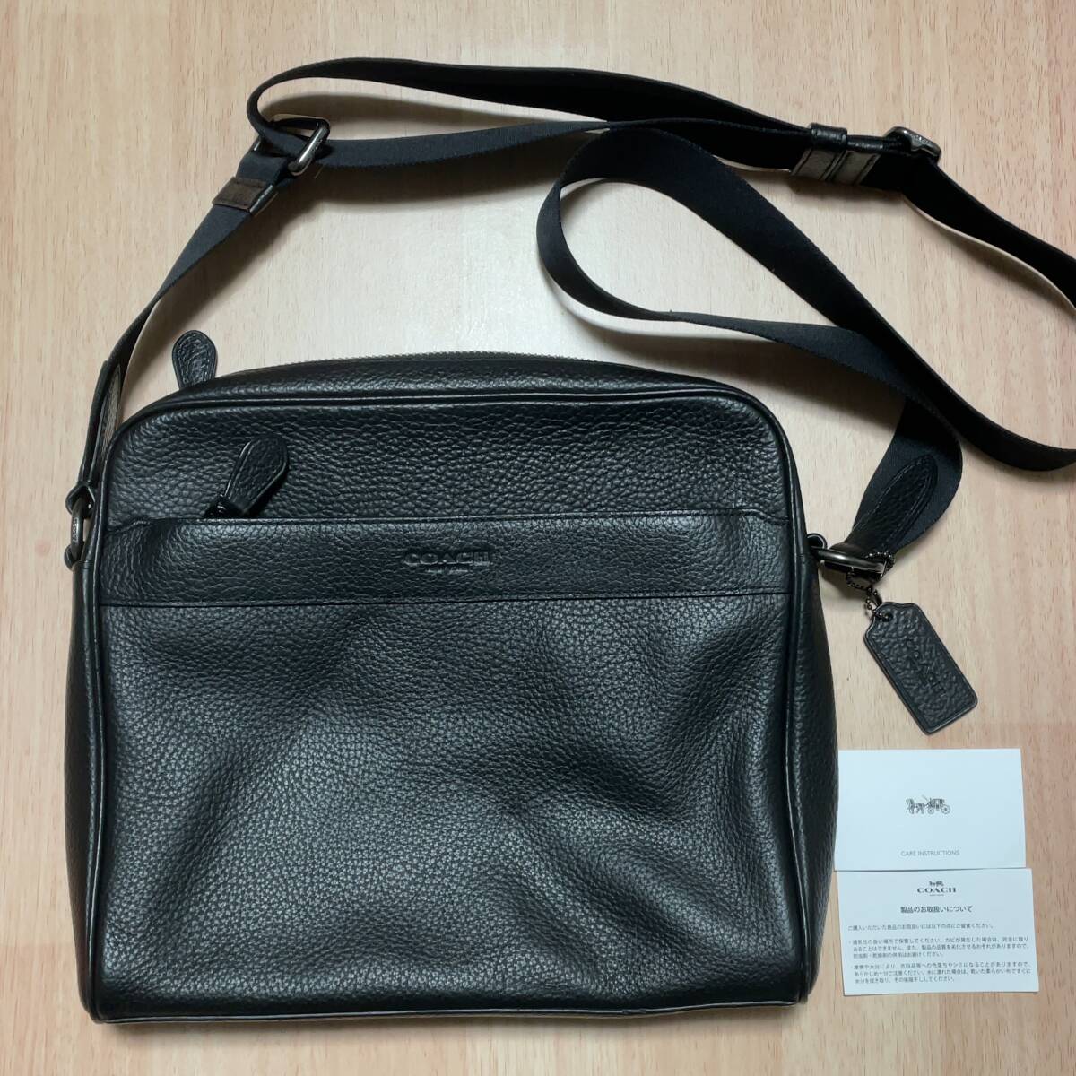 送料無料 COACH コーチ 本革 レザー ショルダーバッグ ブラック 黒 メンズ レディース バッグ