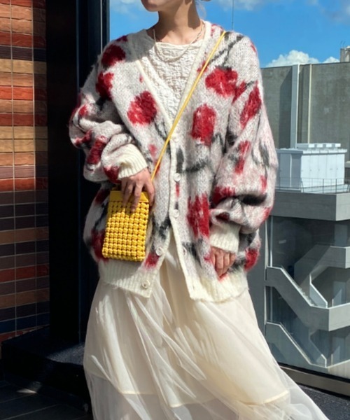 キーワード:カーディガン レディース ロング丈 花柄 長袖 秋 冬