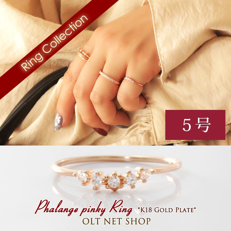 5号 / 新品 ピンキーリング K18GP 指輪 ファランジリング 18金 ピンクゴールド レディース ダイヤ CZ 小指 ミディ 関節 プレゼント 女性