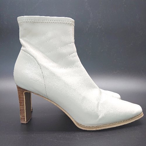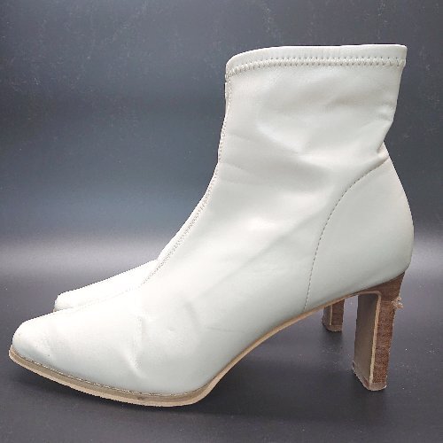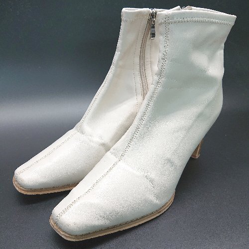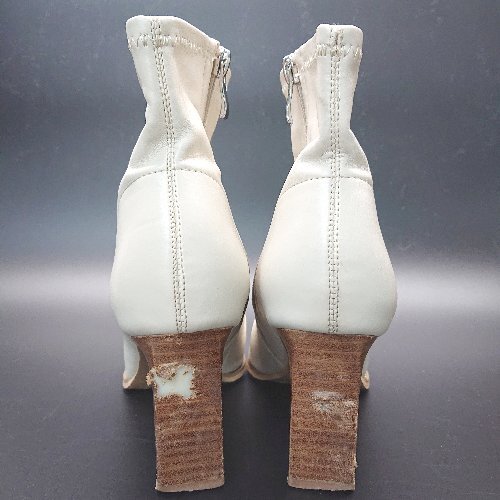 ■ EVOL イーボル シンプル 綺麗め スクエアトゥ 大人 ショート ブーツ サイズM アイボリー レディース E