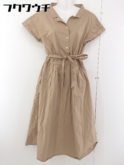 ◇ ◎ Ray BEAMS レイ ビームス ウエストリボン付き 半袖 ロング ワンピース サイズ1 ベージュ系 レディース