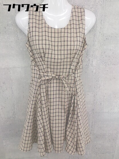 ◇ CIAOPANIC バックジップ ノースリーブ チェック ミニ ワンピース ベージュ ブラック ピンク レディース
