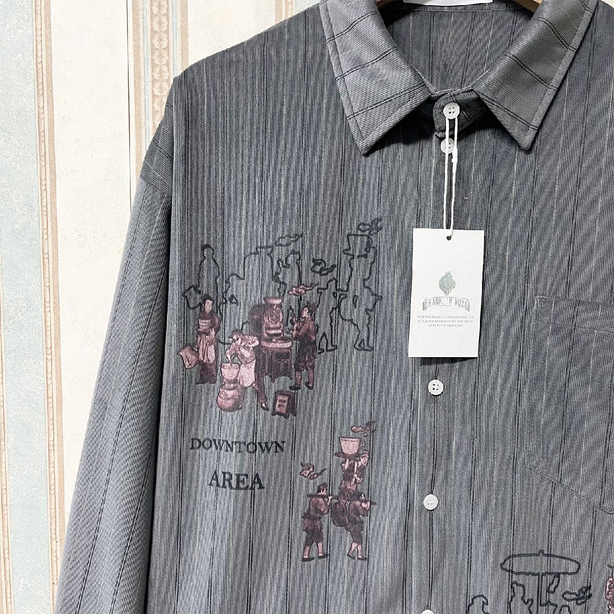 高級 定価4万 FRANKLIN MUSK・アメリカ・ニューヨーク発 長袖 シャツ 柔らか 折り襟 ストライプ柄 開襟 カジュアル 通学 通勤 日常着 春秋 サイズ1