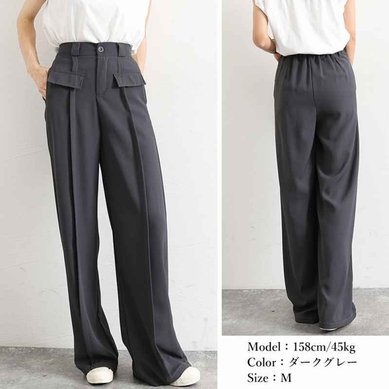 フロントにはタックが施され、ゆったりとしたシルエットながらも上品さを感じさせ、ウエスト後ろ部分は楽ちんゴム仕様で、穿き心地が快適です。