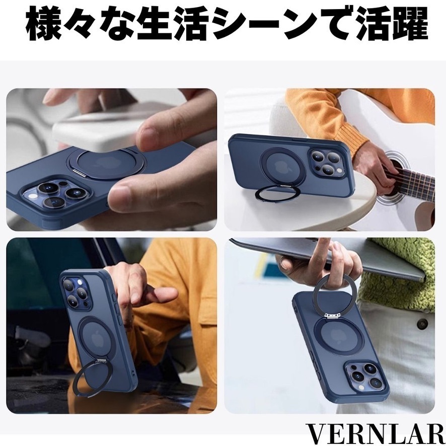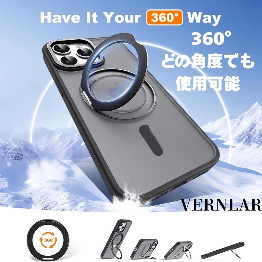 【特徴】MagSafe対応 × 360°回転リング × 耐衝撃クリア設計