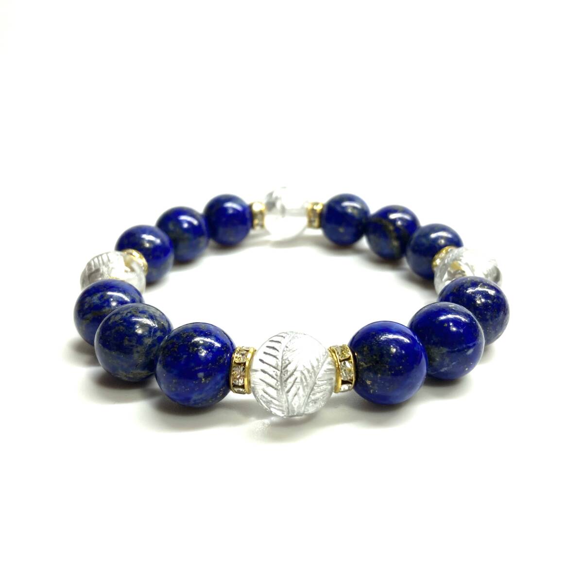 こちらは、四神獣銀彫水晶とラピスラズリを組み合わせたパワーストーンブレスレットです。四神獣は、中国の伝説で4つの方向(東西南北)を守護する神聖な神。四神獣、厄災から身を守り、多くの運気を呼び込むと言われております。石大きさは程よくインパクトのある12mm玉で内周 約17cmです。 数に限りがございますので気になる方はお早めにどうぞ。