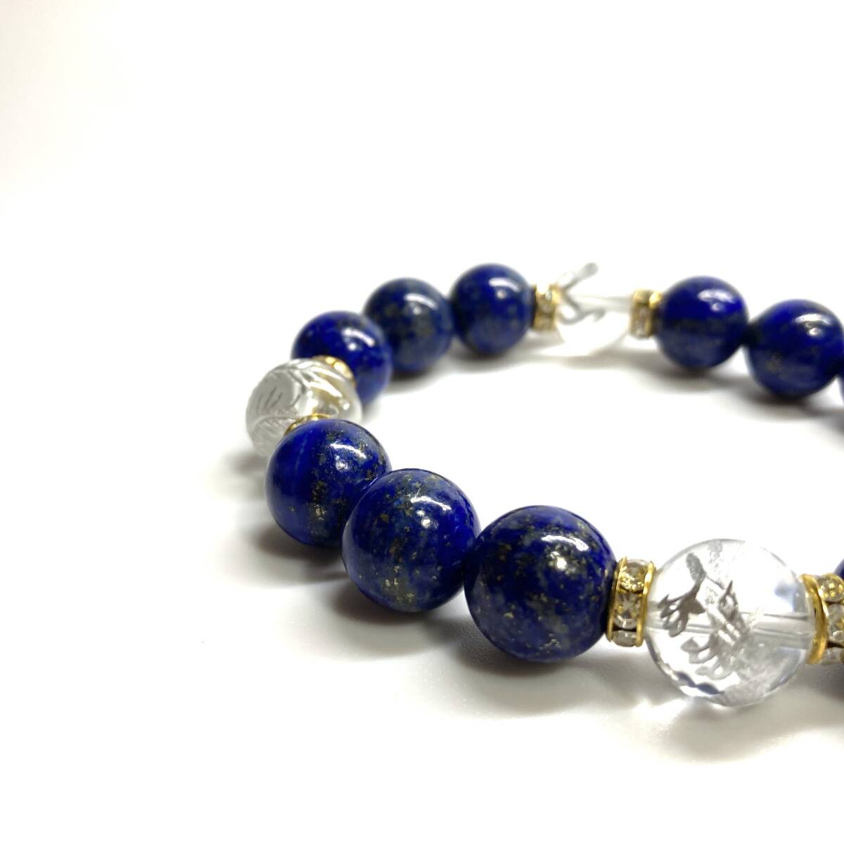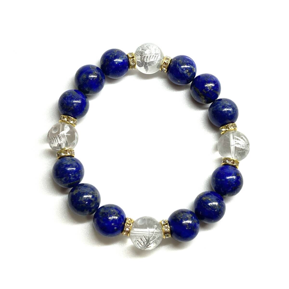 四神獣銀彫水晶×ラピスラズリ 12mm パワーストーン ブレスレット天然石 青龍 白虎 玄武 朱雀 運気上昇 金運 健康運 お守り 四神相応 G