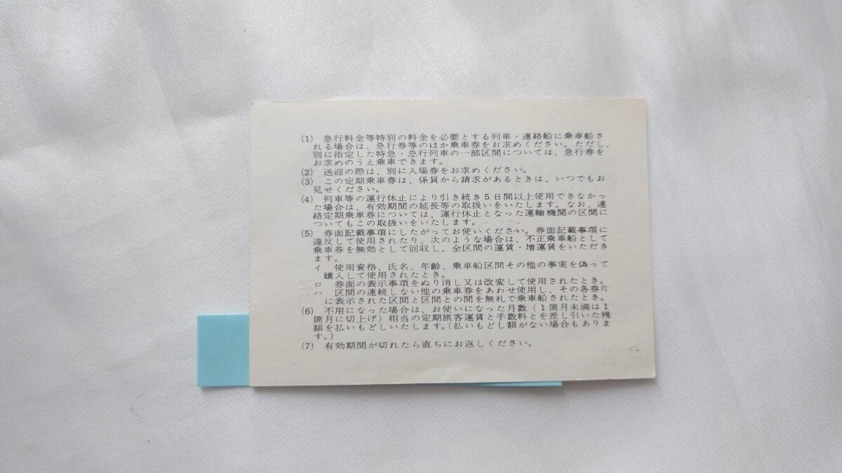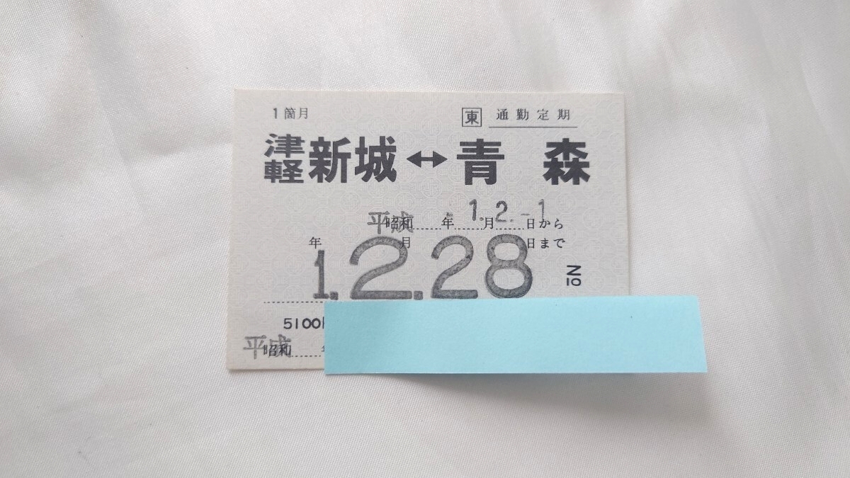 ▽JR東日本▽津軽新城⇔青森 通勤常備定期券▽平成1年