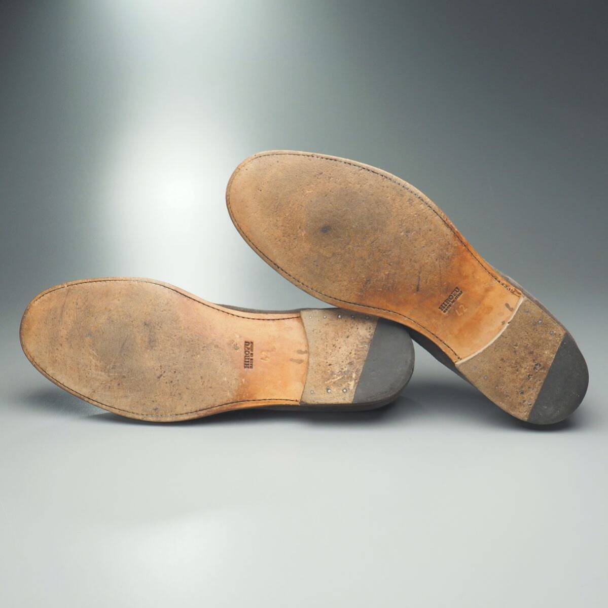 【コンディション詳細】 アッパーのシワ、所々の薄い擦れやムラ、またインソールやライニングの擦れや薄汚れが見られますが、その他気になるようなダメージ等なくこれからも気持ちよくご愛用いただけます。 アウトソールの減りはトゥ・ヒール共に2mm程度です。 |