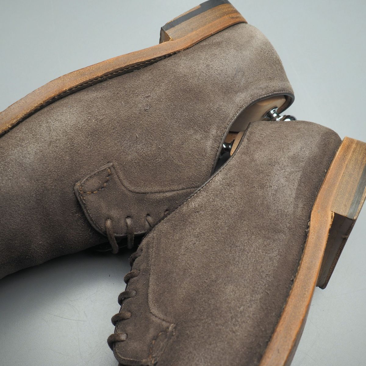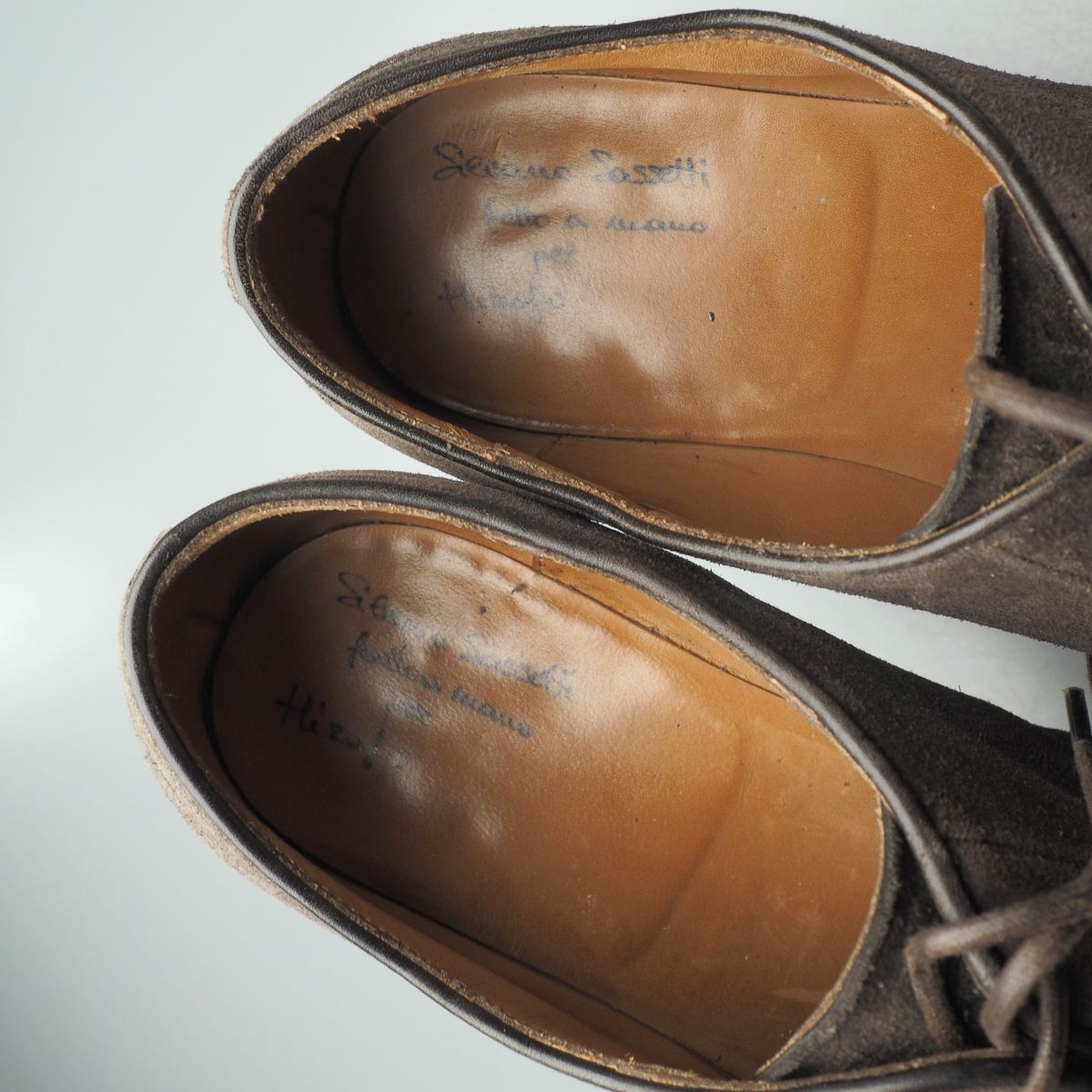 イタリアの高級シューズブランド「シルバノサセッティ/SILVANO SASSETTI」の一足です。 1977年に紳士靴ブランドとして創業、シューズや革小物、バッグなどを中心に展開する日本のファッションブランド「ヒロフ/HIROFU」の別注品。 滑らかなタッチのスウェードレザーをアッパーに用いたプレーンフロントのシンプルな5アイレットダービー。 暖かみのある素材感が今時期のシーズンと相性抜群です。 製法:ブラックラピド アウトソール:レザー トップリフト:レザー×ラバー ライニング:レザー 生産:イタリア製 付属:木製シューキーパー ※本物の商品ですのでご安心の上オークションをお楽しみ下さい。 ※タイトル頭の英数字は弊社の管理番号です。 ※ほかにも多数の商品を出品しています。 ※同梱に関しましては「まとめて取引」でのみ対応可能です、その他の方法での同梱対応は出来かねます。 (※商品の特性上、同梱対応出来ない商品もございますので予めご了承下さい。) |