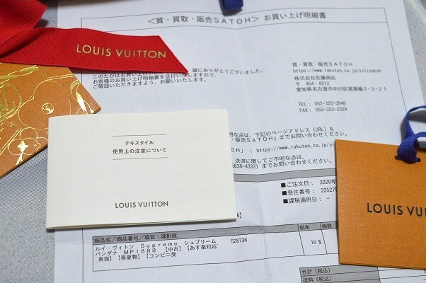 パリコレで発表され、このプロジェクトの為だけの期間限定ショップまでつくった、ファッション界の世紀のコラボとなったシュプリーム×ルイ・ヴィトンのバンダナです。サイズ等はブランドショップ等のHPを参照ください。製造がルイ・ヴィトンなため、定価もとても高価でしたがそれでも即完売且つ超プレ値で転売され、当方はこのバンダナしか入手できなかったです。バンダナは原宿あたりで明らかな偽物も販売されていたため、当方は質屋さんにてほぼ未使用品をプレ値で入手しました。実物は手に取ればすぐわかる、上質なコットンポプリン素材かと思うのですが、スベスベの肌触りと光沢で、シルクのスカーフの様な高品質さです。付属の箱は別のものかもしれません。長らくコレクションしてきましたがとても使用する気が起きないのと、趣味が変わったため出品します。画像の中古購入時の納品書はご希望でしたら個人情報部分を切り取って差し上げます。ご要望なければこちらで処分します。発送はヤマト運輸宅急便の着払いのみとさせていただきます(申し訳ありませんが他の発送は致しません)。関東より80サイズで発送予定です。個人出品の為、ノークレーム・ノーリターンでお願いいたします。※新規IDおよび、お取引が遅い方、受取連絡をしない方、キャンセル歴が多い方、入札代行業者および転売ヤーは入札を一切お断りさせていただきます。新規IDおよびキャンセル歴の多い方、入札代行業者および転売ヤー、24時間以内にお取引開始していただけない方、その他当方主観で怪しい方は落札者都合で削除させていただきます。お互いに誠実で気持ち良いお取引を希望します。