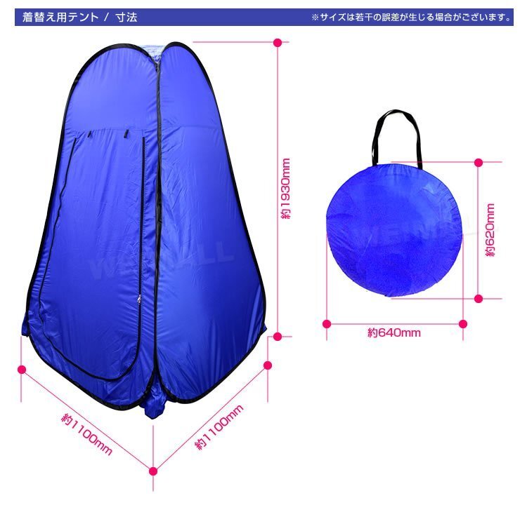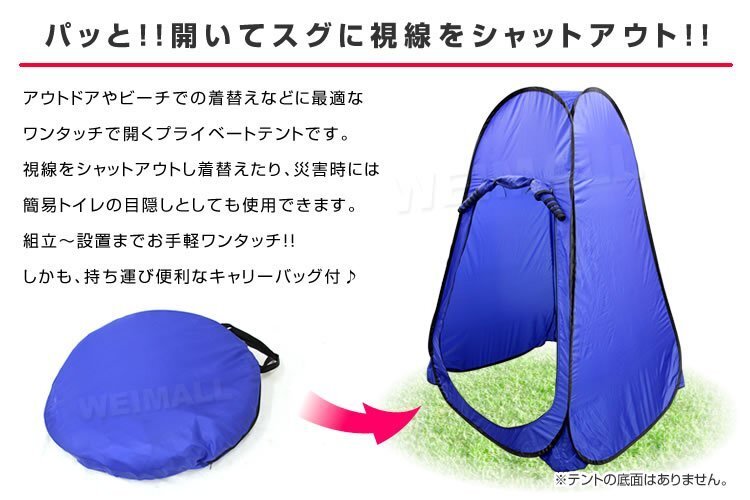 | ワンタッチ 着替え用テント (プライベートテント 簡易トイレ) 扉ジッパー開閉仕様 (外側&内側から扉を開閉出来ます) |