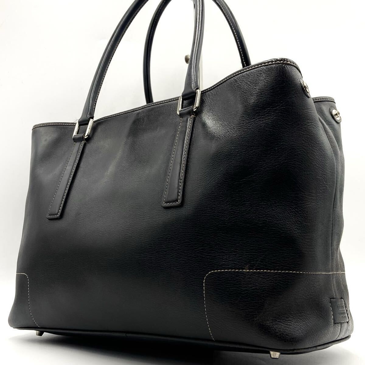 美品◎A4収納◎COACH メンズ トートバッグ レザー ブラック 肩掛け ビジネス 本革 黒 コーチ ブリーフケース 出張 出勤 通勤 タブレット