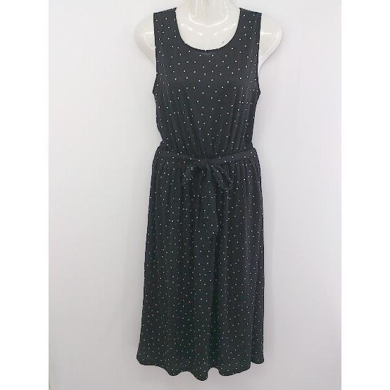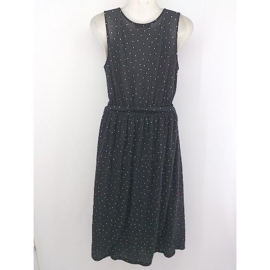 ◇ ◎ nano universe 水玉 ドット ノースリーブ 膝下丈 ワンピース サイズF ブラック ホワイト レディース P