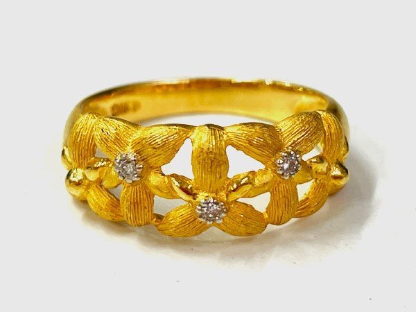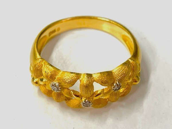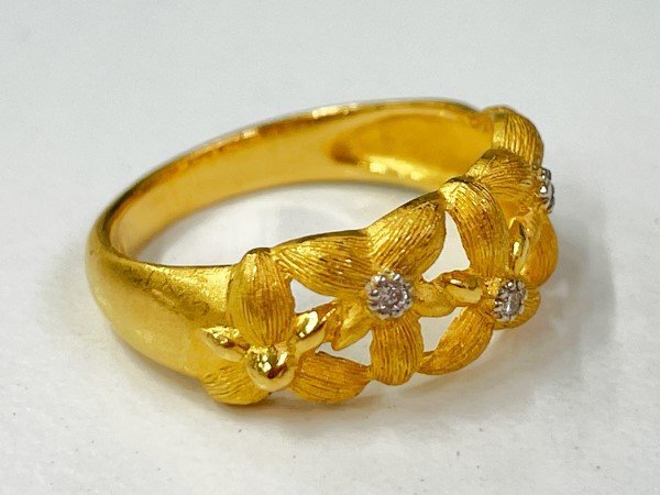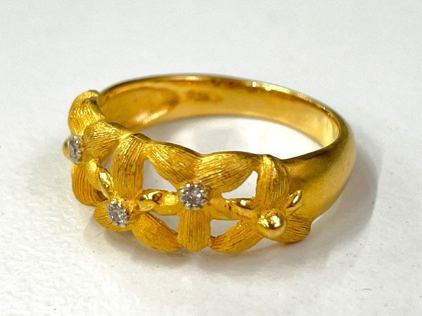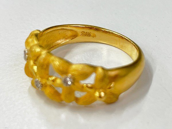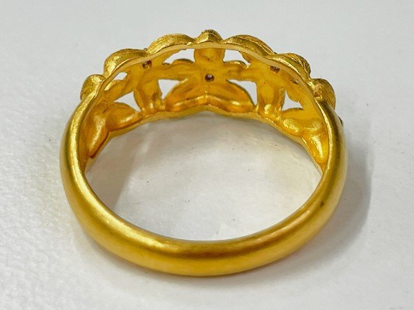 指輪 リング 24K 純金 金 花 フラワー モチーフ ストーン 石付き 宝石 ジュエリー/ゴールド/13号/1円スタート/AY