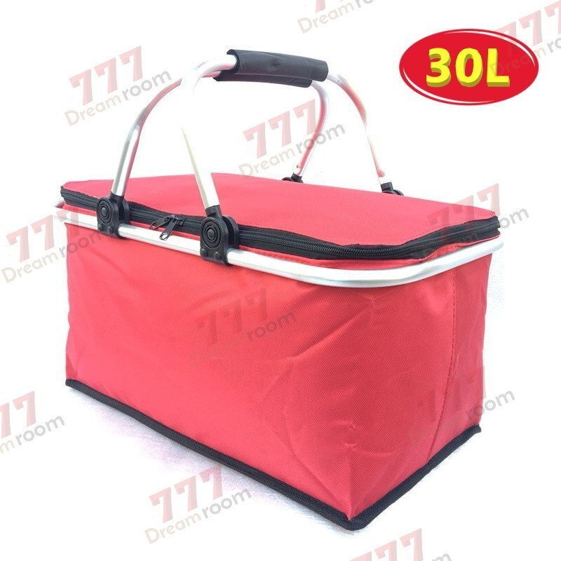保冷・保温 機能付き 30L 折りたたみ式 エコバッグ【レッド】大容量 バスケット 買い物かご 断熱バッグ屋外 ピクニック
