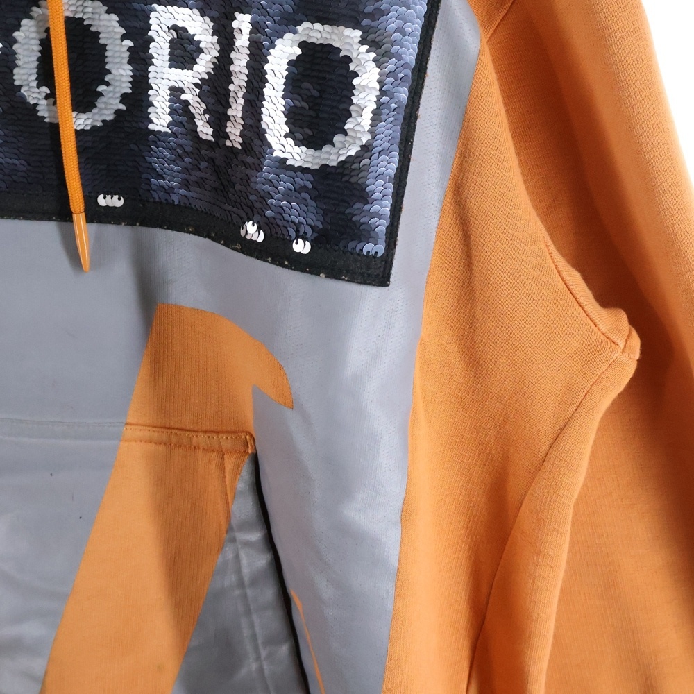 EMPORIO ARMANI エンポリオアルマーニ スパンコール フロントデザイン フーディープルオーバーパーカー 3H1M6R 1JH6Z オレンジ