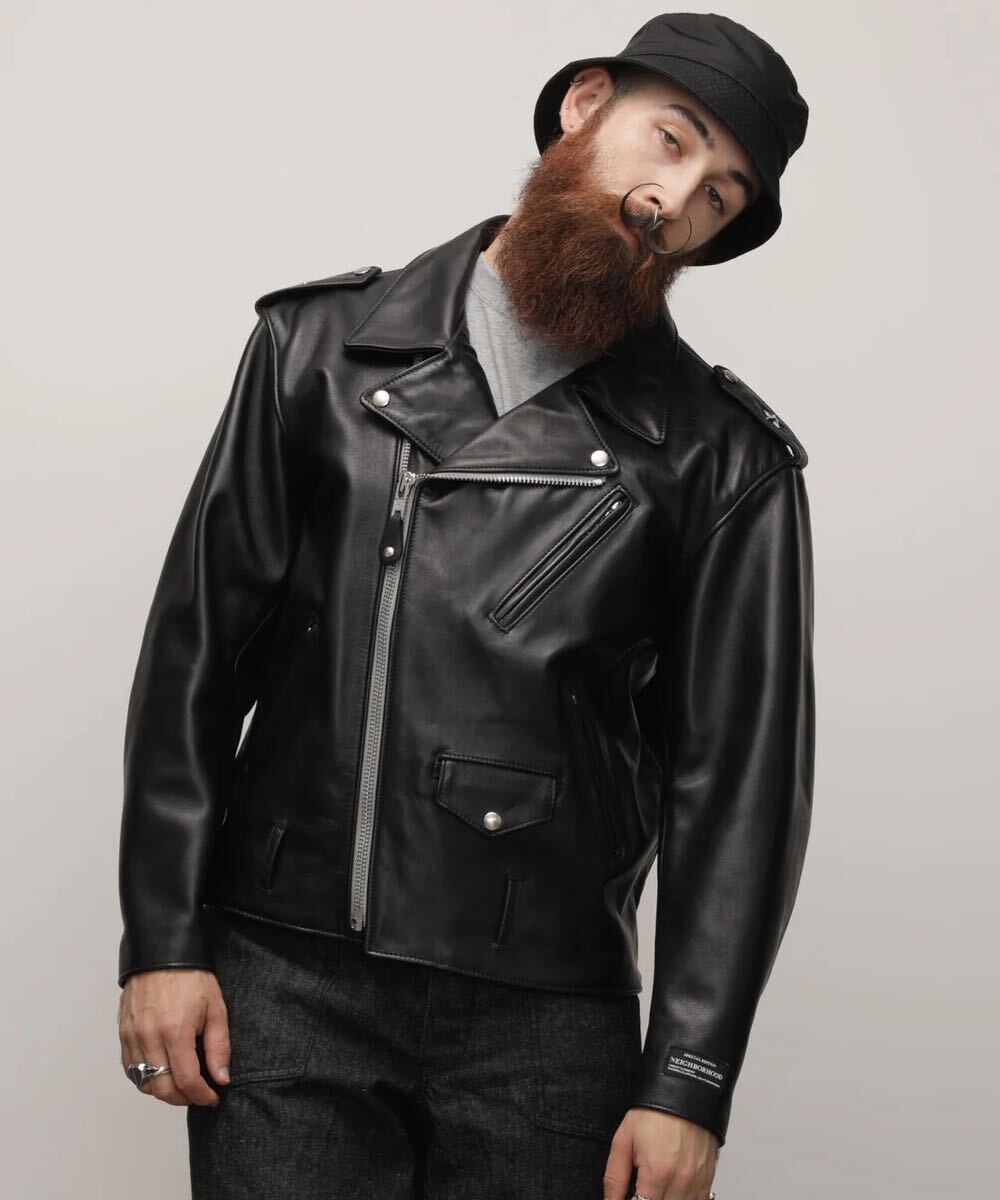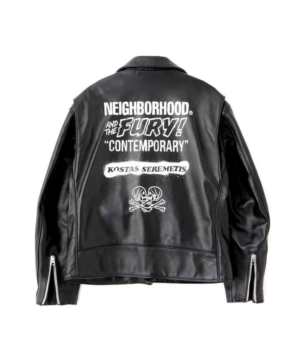 アメリカ・ニューヨークを拠点とするアーティストKostas Seremetisのグラフィックを施したレザーライダースジャケット。