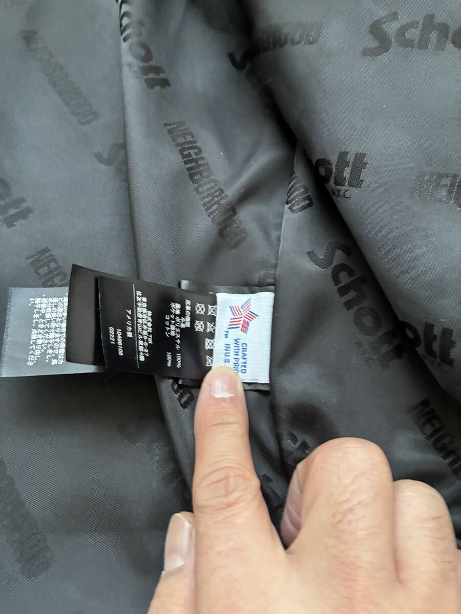 エポレットに星型スタッズを配し、左袖口にネームタグを付属。裏地には両者のロゴをプリントしたオリジナルジャカード生地を採用。