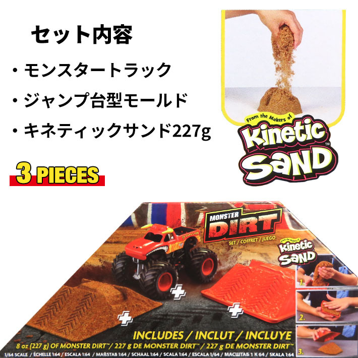 トラックにキネティックサンドとジャンプ台型のモールドの付いた3点セット。