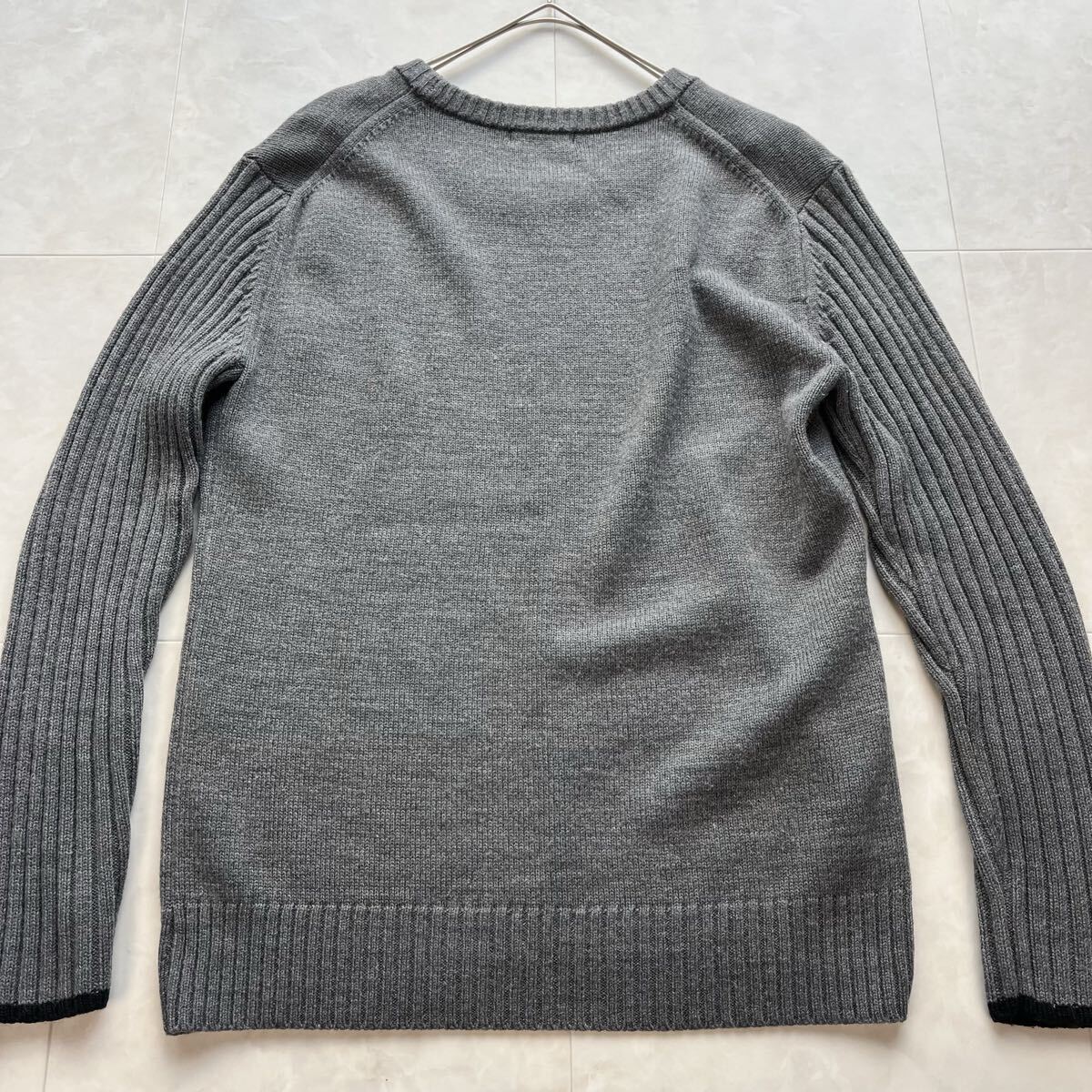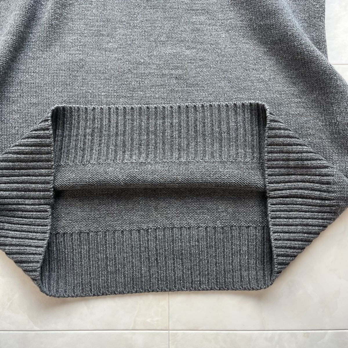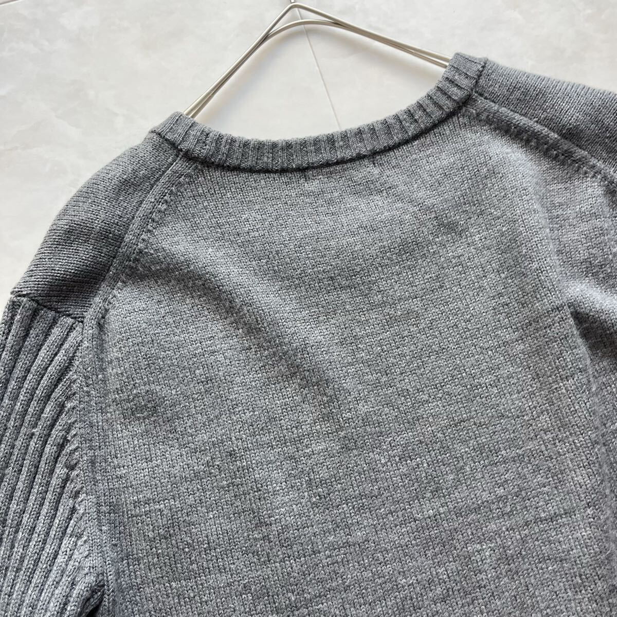 グレーの落ち着いた色味とシンプルなデザインで、さまざまなスタイルに馴染む定番ニットです。ウール混のしっかりした生地感で、これからの季節にも活躍します。