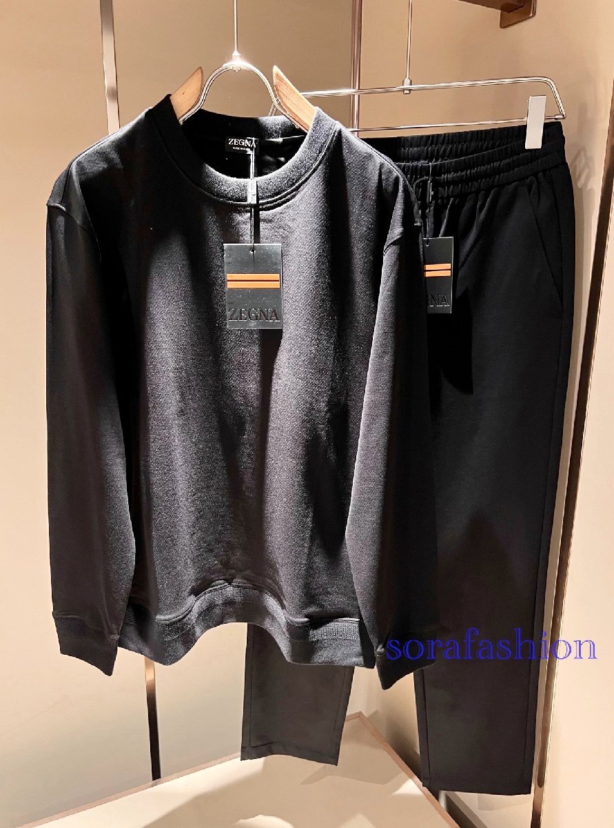 Ermenegildo Zegnaエルメネジルド ゼニア メンズセットアップ 上下2点セット ブラック XL 長袖T-シャツ 長ズボン スウェット スポーツ服