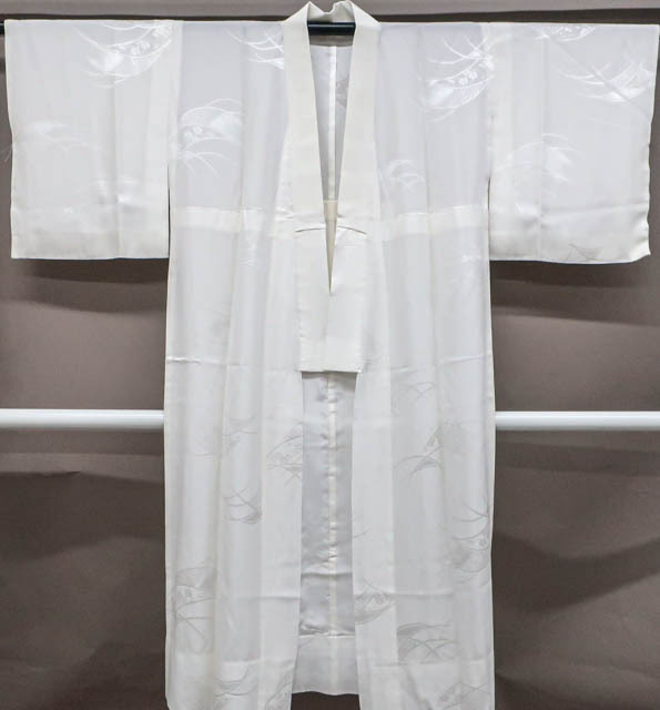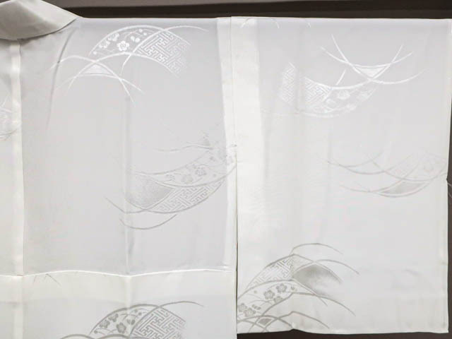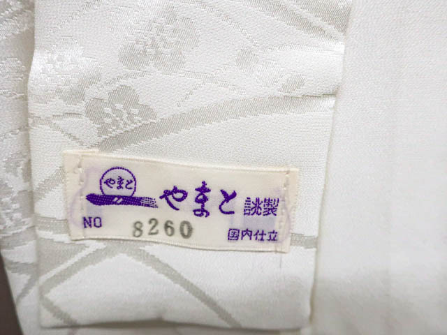 リサイクル商品のため、右後袖に小さな汚れがございますがご着用いただけると存じます。 地色は、白色です。 1枚目の画像が近いお色かと思われます。 素材は、化繊です。 |