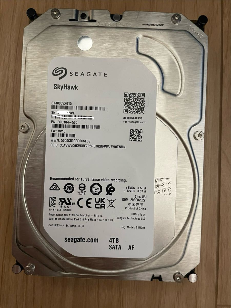 Seagate製 4TB HDD(監視用シリーズ)になります。