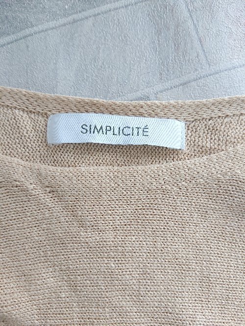 ◇ ⊂ Simplicite シンプリシテェ リネン混 フレンチスリーブ ニット カットソー サイズF ベージュ系 レディース E