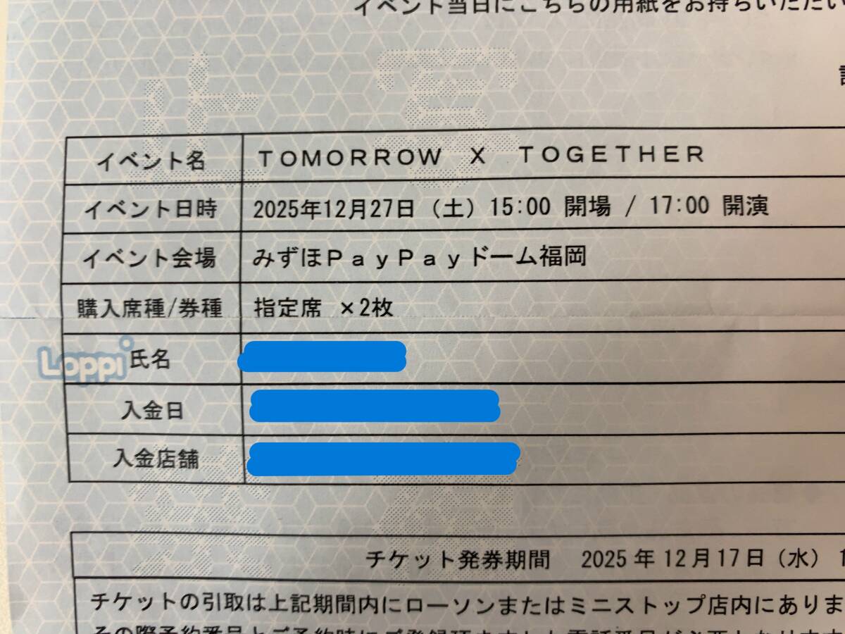 | 商品 | TOMORROW×TOGETHER 2025.12.27 指定席2枚 |