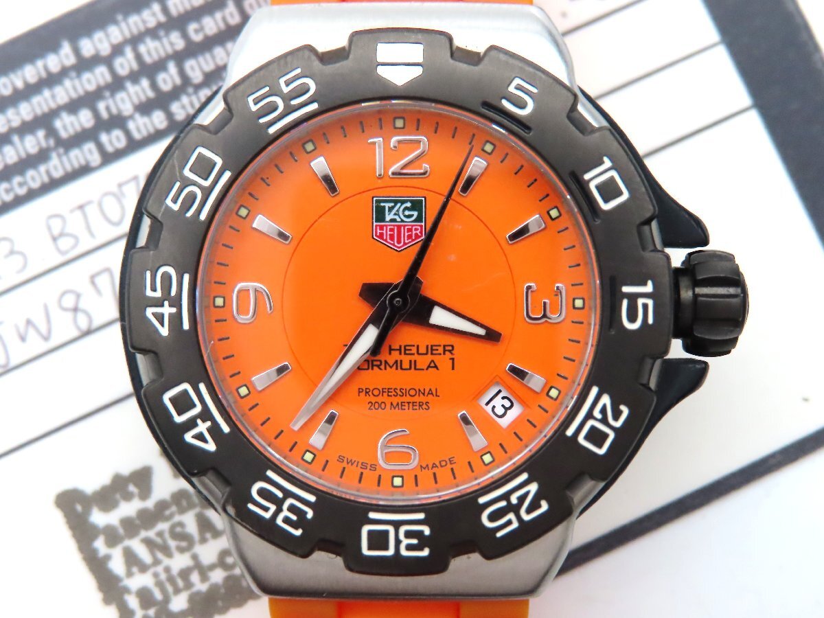 1円 タグホイヤー WAC1213 フォーミュラ1 SS オレンジ文字盤 メンズ 稼働 QZ 保 29494 EARK