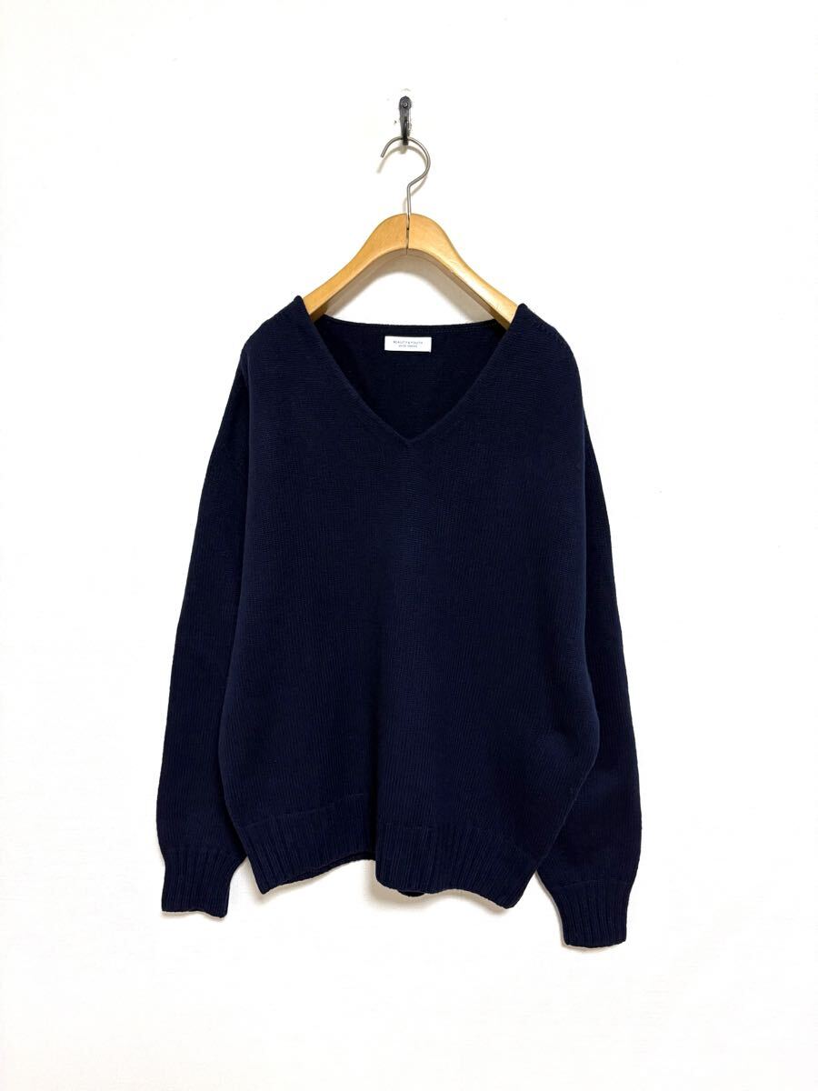 『ユナイテッドアローズ BEAUTY&YOUTH」のニットです。サイズ・・・フリー(身幅約58cm、着丈約63cm)。素材・・・ウール70%、ナイロン30%。カラー・・・紺。定価・・・13200円。繋ぎ目の無いホールガーメント製法で、立体感のあるナチュラルなシルエットのニットです。ふっくらとした肌ざわりで暖かいです。数年前に購入し、何度か使用しました。多少毛羽たちはありますが、目立つダメージはないです。ただ、あくまでユーズドですので、神経質な方はご遠慮ください。よろしくお願いいたします。