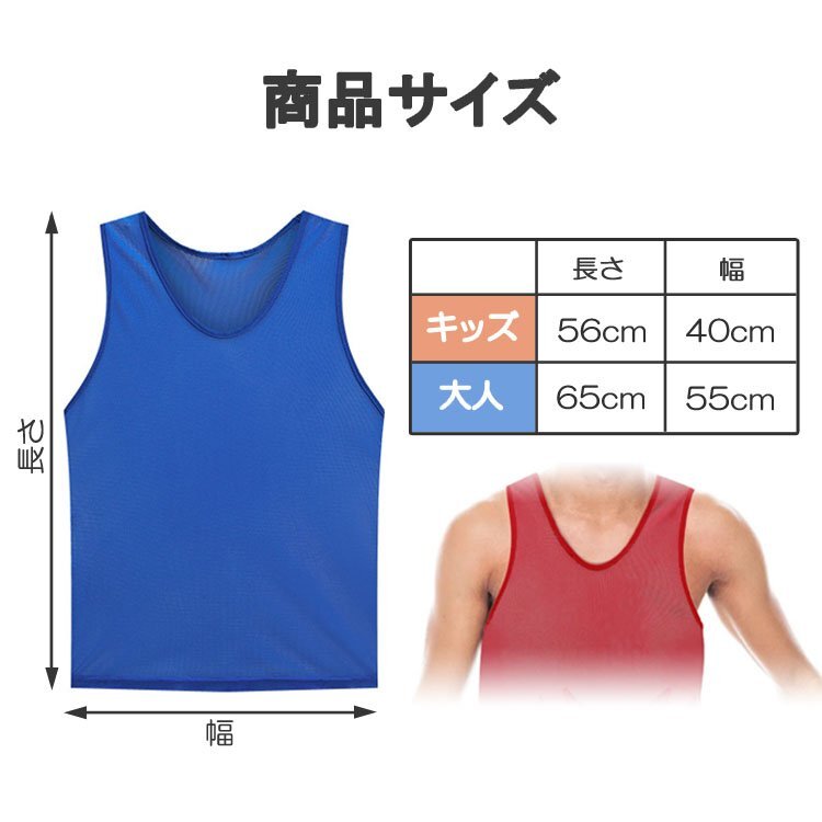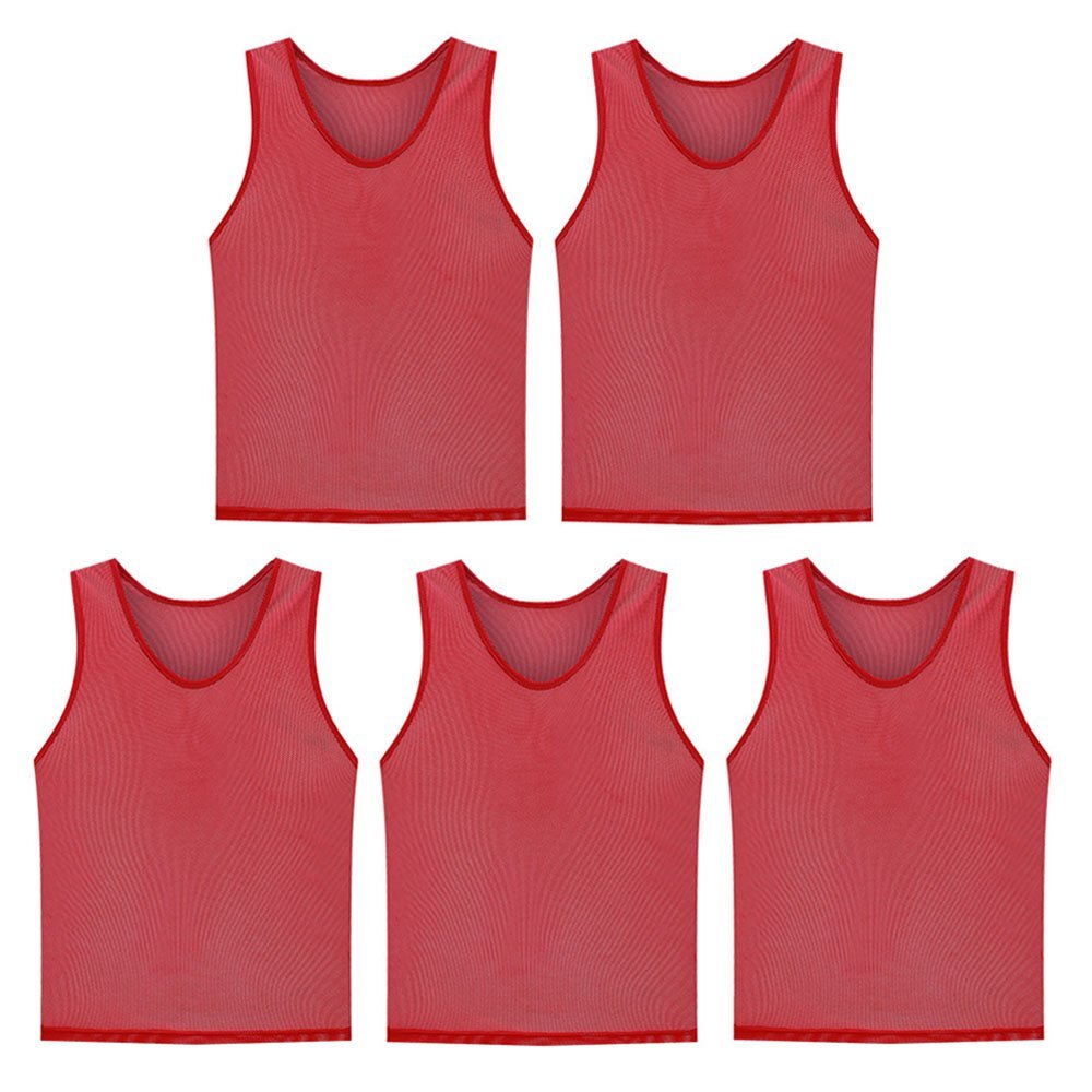 ◆ゼッケンベスト 5枚セット ビブス メッシュ 無地 サッカー バスケ フットサル 運動会 リレー スポーツ イベント ボランティア チーム分け 色分け 子ども用 大人用【大人用レッド】BIBVS05S