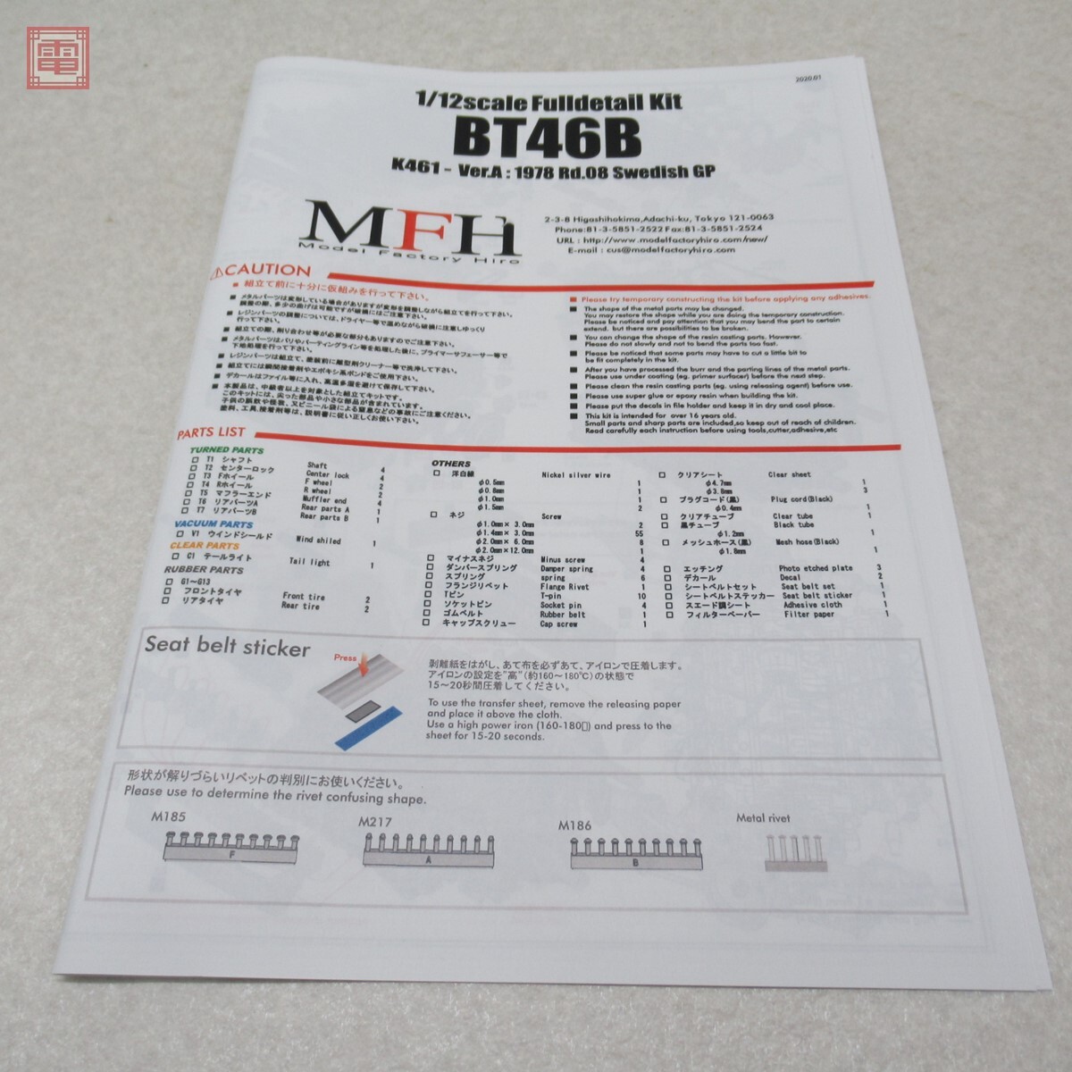 未組立 MFH 1/12 ブラバム BT46B Ver.A 1978 Rd.08 スウェーデンGP モデルファクトリーヒロ Brabham レジンキット ■外箱にスレがあります。 ■内袋は未開封です。 ■パーツにスレ、キズがあります。 一部外箱に内箱が固定されています。 ■説明書にスレがあります。 ■パーツリストの確認ができないため、パーツの過不足等の詳細は不明です。 ■写真のものが全てです。付属物の有無や状態については写真からご判断ください。 ■付属物については細かいチェックはしておりませんので、万が一、欠品があったり余計な物が入っていたとしてもご了承ください。 ■商品到着後、当店の保証期間中は、商品及び箱や取説、付属品などを1つでも廃棄や破損をしないようにお願い致します。廃棄や破損をした場合、商品に問題があった場合でも対応や返金などの対処ができなくなります。 ■商品によりますが、発売されてから10年以上経過している中古品である事をご理解頂いた上でご入札をお願い致します。なお、新品や美品、また特記事項がある場合は別途明記します。 | |||