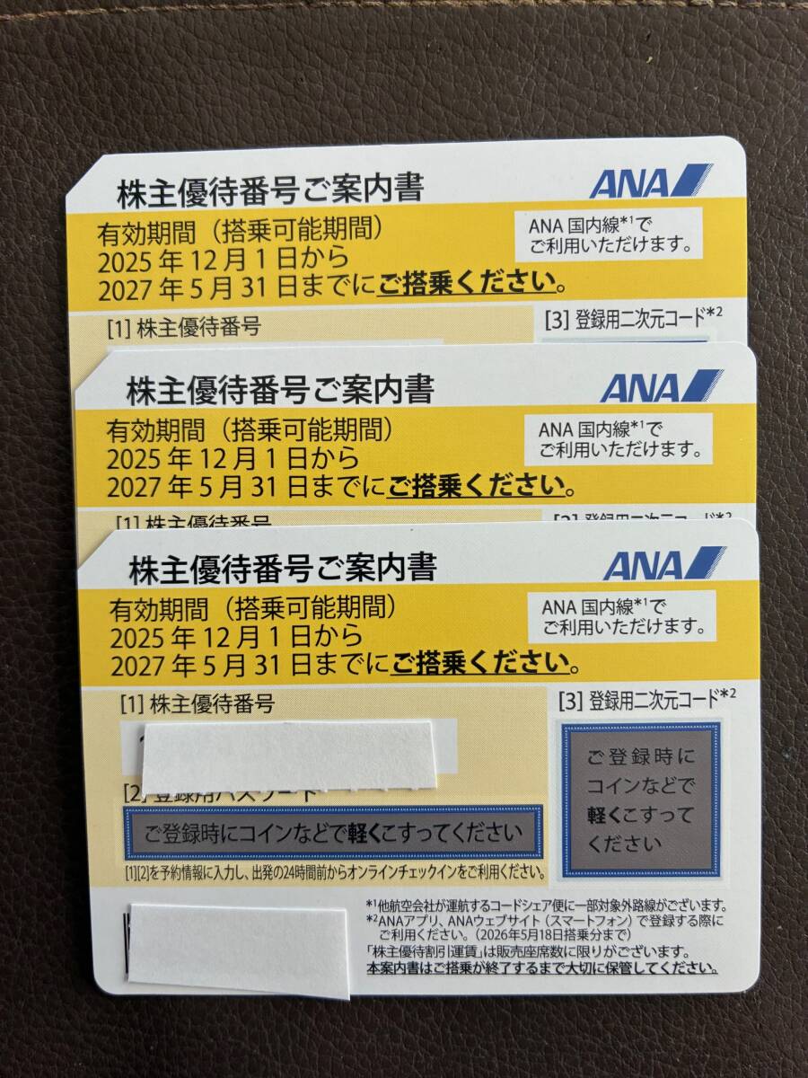 ★送料無 最新(2025/12/1-2027/5/31) ANA 株主優待券 3枚+ANAグループ優待冊子(2025/12/1-2026/5/31)
