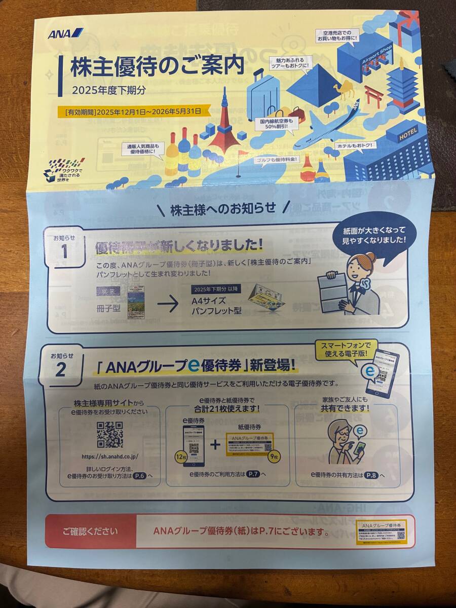 ANAグループ優待券(2025年上期分 2025年12月1日から2026年5月31日有効)という冊子
